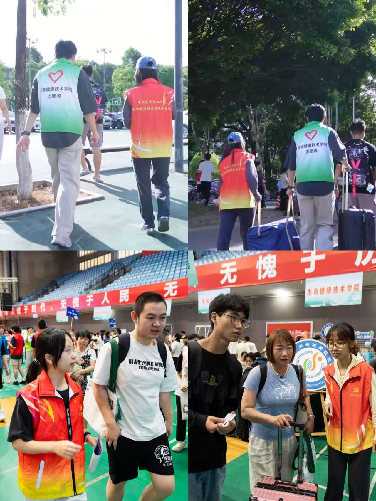 迎新现场,支部党员佩戴党员徽章、亮明身份,组建“党员志愿服务队”,设立“党员迎新服务站”,穿梭活跃在校门、迎新点和宿舍楼之间。他们以饱满的热情投入志愿服务工作,热心帮助新生搬运行李、细心指引校园路线、耐心解答各类疑问,用周到服务化解新生初入校园的疑惑。从入学信息核验到生活物资搬运,从校园环境导引到宿舍入住安顿,学生党员志愿者们以汗水诠释担当,以微笑传递温暖,成为迎新现场一道亮丽的风景线。