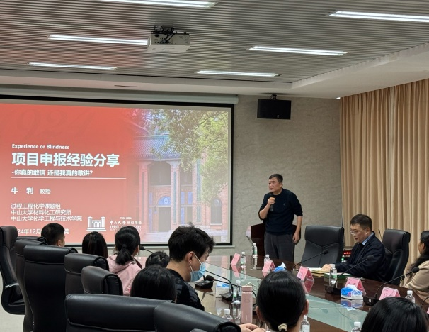 为进一步做好2025年度国家自然科学基金项目申报工作,提高教师的科研项目申报质量和水平,12月27日,学院邀请中山大学材料化工研究所所长牛利教授就项目申请作经验交流报告。学院院长王际辉,副院长闫景坤,学科领军人才尚禹教授、刘亚青教授以及30余名专任教师及博士后参与交流。