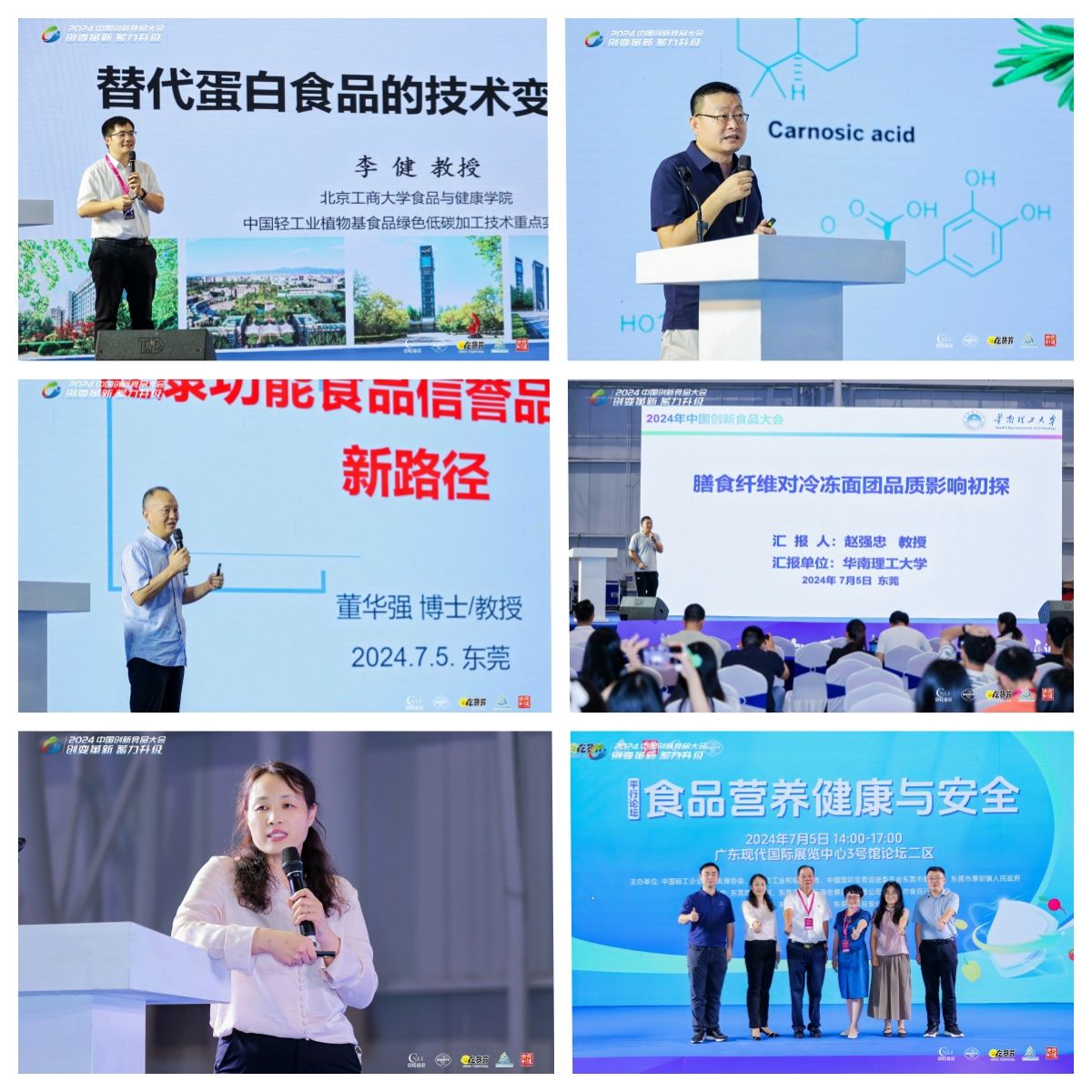 2024年7月5日上午,由中国轻工企业投资发展协会、东莞市工业和信息化局、中国国际贸易促进委员会东莞市委员会、东莞市厚街镇人民政府主办,yl23455永利集团、东莞市食品行业协会和东莞市星汇云海会展服务有限公司承办,东莞市食品学会和东莞市食品安全促进会协办的“2024第五届中国创新食品大会暨粤港澳大湾区食品博览会平行论坛——食品营养健康与安全论坛”在东莞市厚街镇广东现代国际展览中心举行。论坛由我院副院长闫景坤主持,特邀北京工商大学食品与健康学院副院长李健教授、深圳大学化学与环境工程学院王明福教授、粤港澳大湾区食品安全与健康联盟(粤方)主席董华强教授、华南理工大学食品科学与工程学院赵强忠教授和我院刘亚青教授做专题学术报告,100多名我院师生和各界企业家参加论坛。