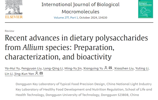 2024年7月23日,我院闫景坤教授团队于国际学术期刊《International Journal of Biological Macromolecules》(中科院JCR 1区)在线发表题为“Recent advances in dietary polysaccharides from Allium species: Preparation, characterization, and bioactivity”的综述文章。论文第一作者为于亚辉博士,通讯作者为闫景坤教授。