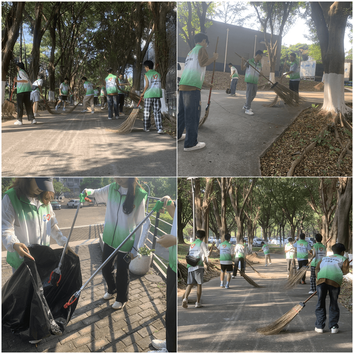 微风拂动,志愿者们在冬阳下有序地开展劳动。他们利用手中的清扫工具将图书馆周围的垃圾、杂草进行收集清理。在两个小时的劳作中,志愿者们分工明确,相互协作,享受劳动教育带来的成就感与幸福感。