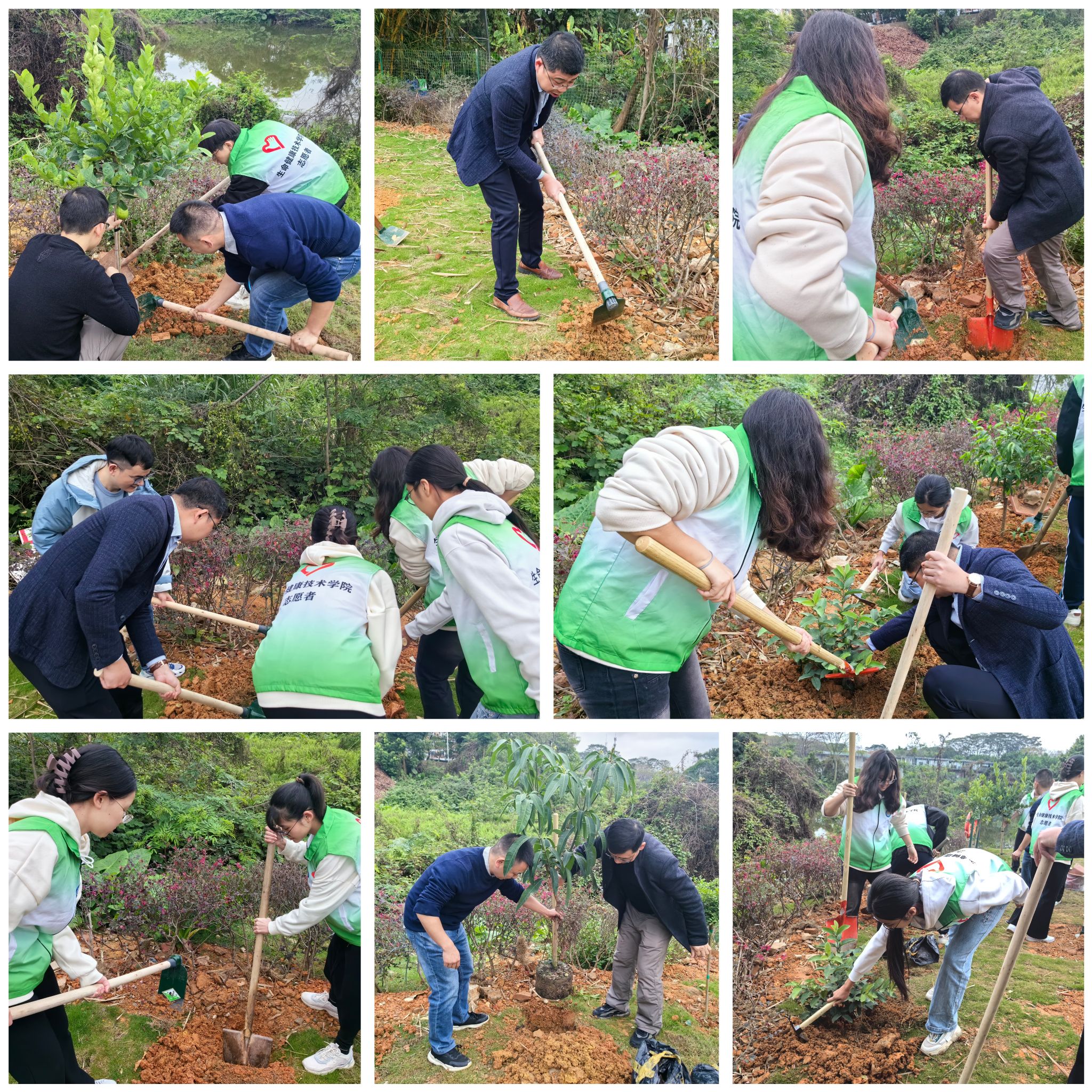 活动现场,师生热情高涨,大家分工合作,有的负责挖坑,有的负责搬运树苗,有的负责培土浇水。在大家的共同努力下,一株株果树苗在培根园内安家落户,为培根园增添了一抹新绿。