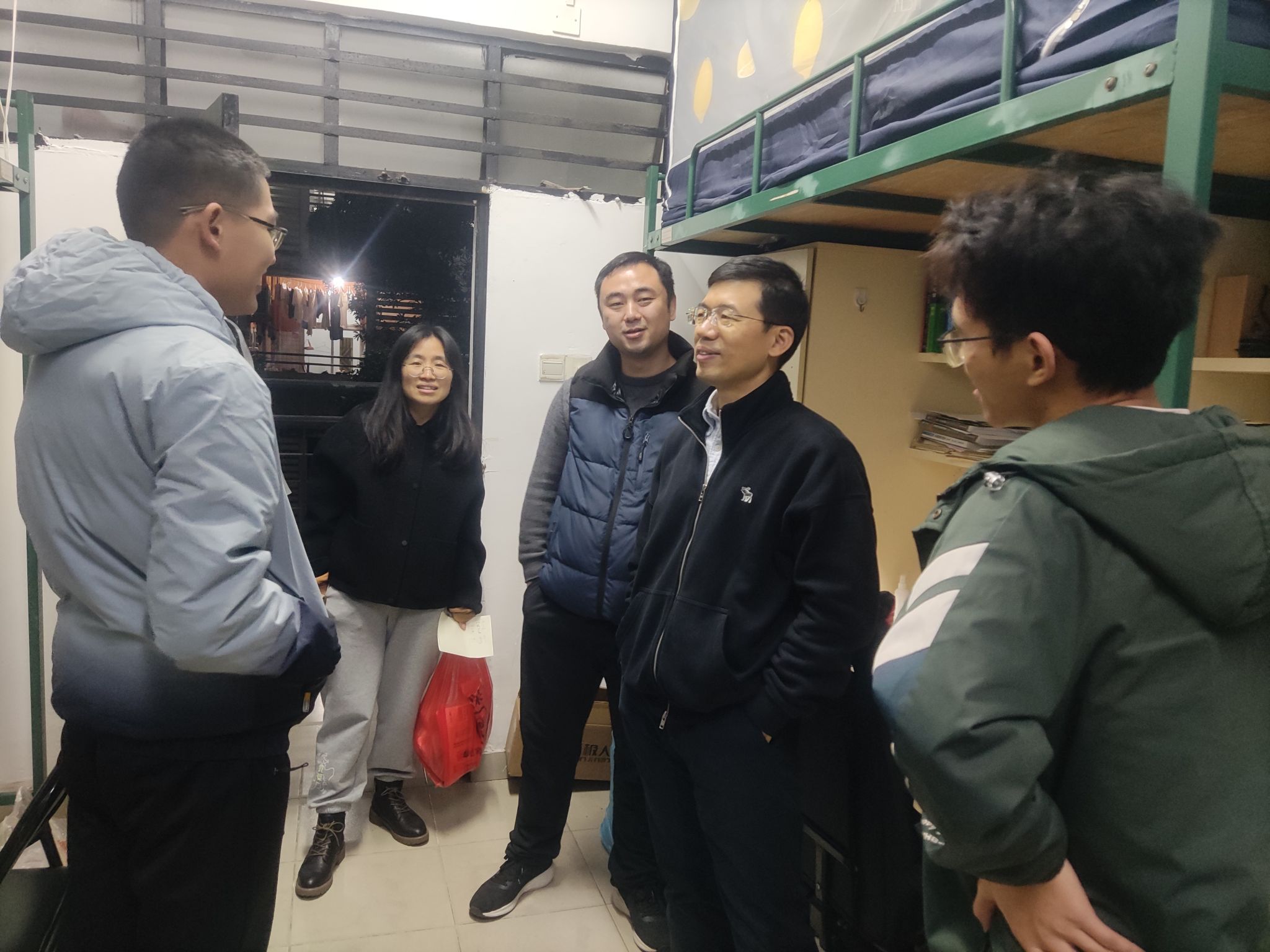 活动现场,老师们与我院考研学子交流备考情况,并给予同学们三点建议:一要树立自信心,调节好身心状态,沉着应战;二要把握好最后几天的学习节奏,巩固复习成果,查缺补漏;三要及时关注考研相关信息,全方位做足考试准备,从容应考。葛金虎表示学院会为考研的同学提供全力支持,助力同学们考试成功。随后,老师们为学生送上精心准备的“考试加油包”,祝愿考研学子考试顺利。活动结束后,老师们走访毕业班宿舍,深入了解毕业生毕业设计、实习实践、就业等情况。