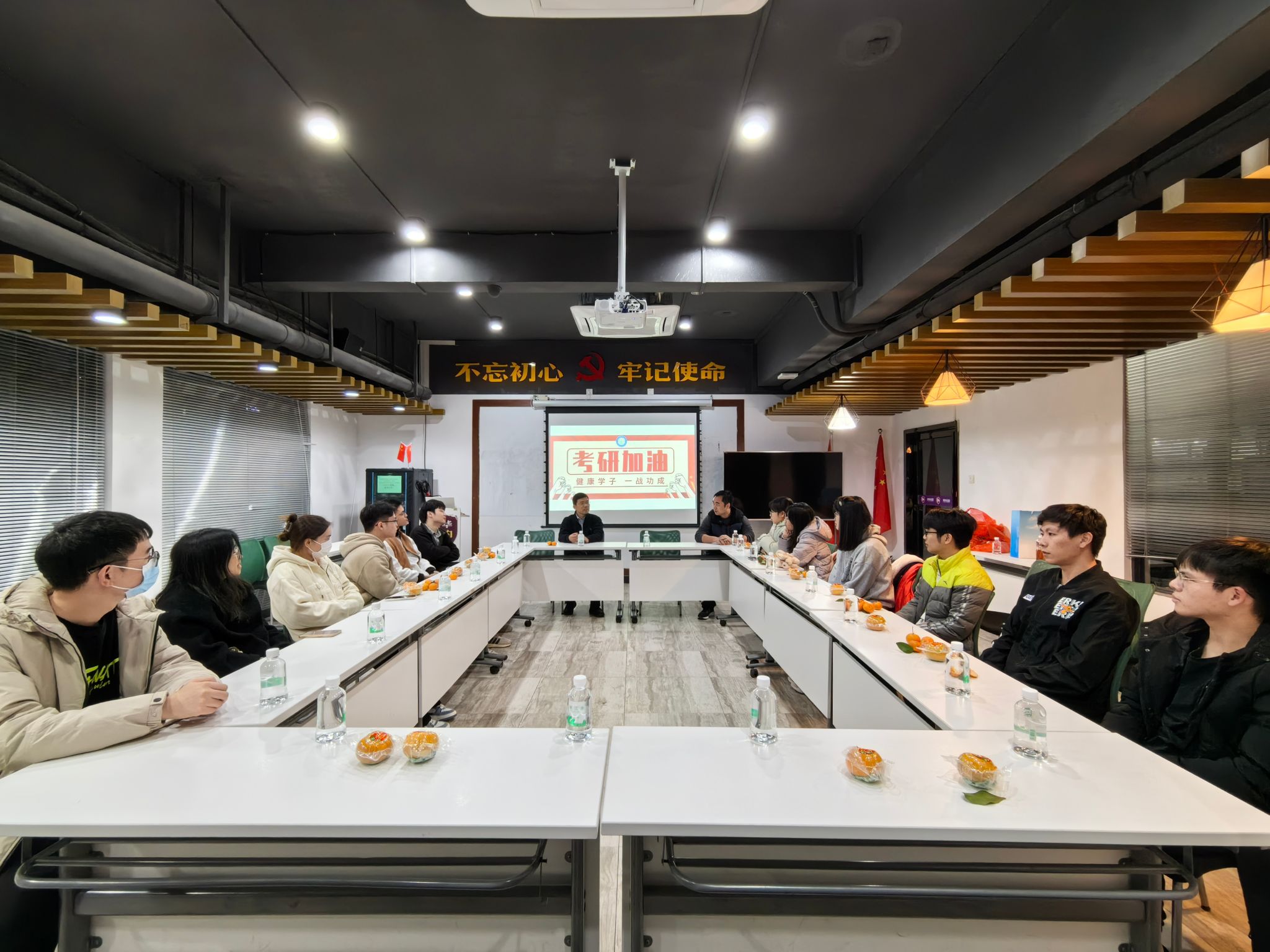 在2024年研考即将到来之际,为鼓舞考研学子士气,增强考试信心,缓解备考压力,12月18日,yl23455永利集团在莞华社区活动室开展2024届考研加油活动。活动由学院党委副书记葛金虎主持,毕业班班主任肖珊、刘宇佳,辅导员杨梅青、刘文渊出席,为考研学子送上暖心祝福。